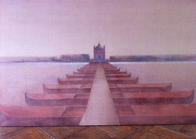 Zwei völlig unterschiedliche Bildkünstler präsentiert die Galerie Schloss Parz in ihrer nächsten Ausstellung: Eduard Angeli und Hans Hoffmann-Ybbs. Der in Wien und Venedig lebende Eduard Angeli verdichtet in seinen Bildwerken Architekturelemente und Landschaftsperspektiven zu absolut präzise gesetzten Raumerfahrungen, die stets eine besondere Lichtsituation in sich tragen. Seine Liniensysteme sind mit völliger Klarheit gesetzt und kontrastieren in großer Spannung mit den weiten Farbräumen und oftmals bewusst gesuchten Schatten- und Dämmerungszonen. In vielen Werken konzentriert sich der Künstler besonders auf die Horizontlinie – dies ist speziell bei seinen aus Venedig entlehnten Bildmotiven nachvollziehbar. Viele Auszeichnungen, internationale Ausstellungen und Werke im öffentlichen Raum zeigen die hohe Wertschätzung dieses Künstlers in der Kunstwelt.