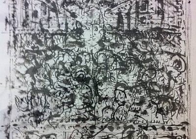 So kompositorisch klar gesetzt – und „gebaut“ – die Werke von Eduard Angeli erscheinen, so gleichsam wuchernd treten die Bilder von Hans Hoffmann-Ybbs dem Betrachter entgegen. Als ob der Künstler seine intensiven Naturbeobachtungen auf der Leinwand oder dem Blatt Papier weiterwachsend lassen würde, erscheinen seine von wilden, expressiven Formen überzogenen Kompositionen. Insbesondere die Welt der Insekten hat es hier dem Künstler angetan – seine Bildwerke wirken wie in ständiger Bewegung befindlich und von flimmernden Lichtsituationen durchzogen.